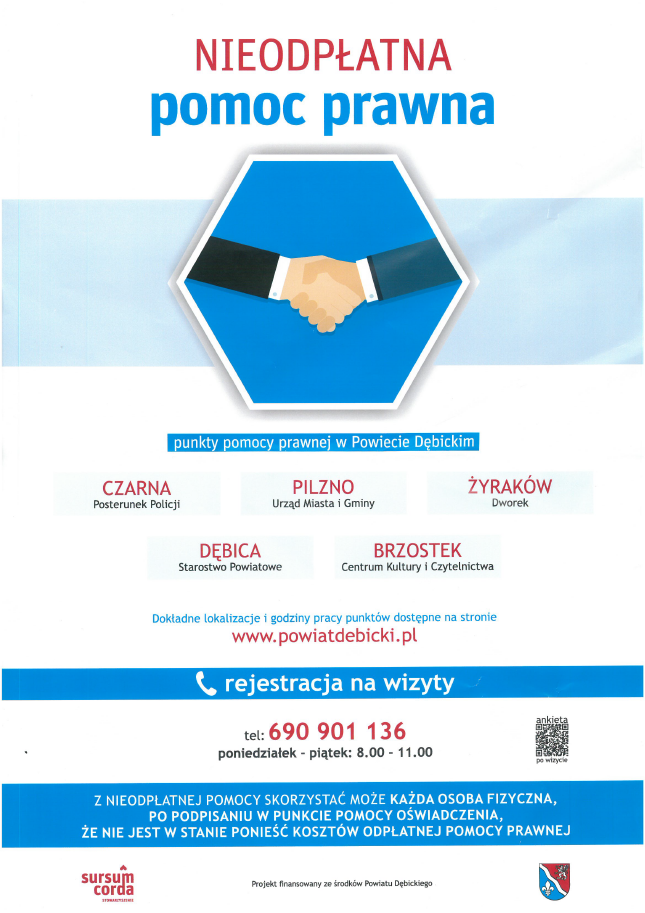 W załączeniu wykaz punktów nieodpłatnej pomocy prawnej oraz plakat.