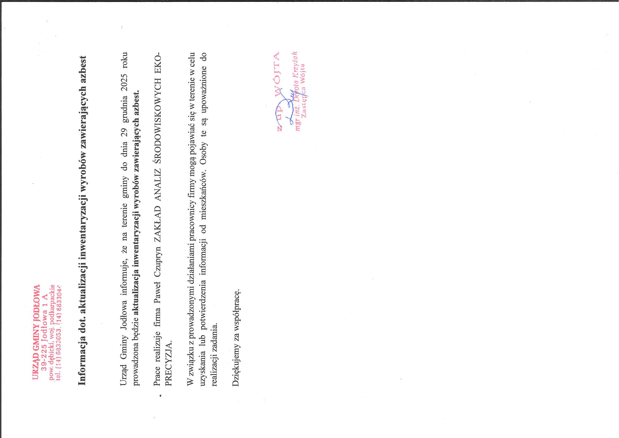 Informacja dot. aktualizacji inwentaryzacji wyrobów zawierających azbest